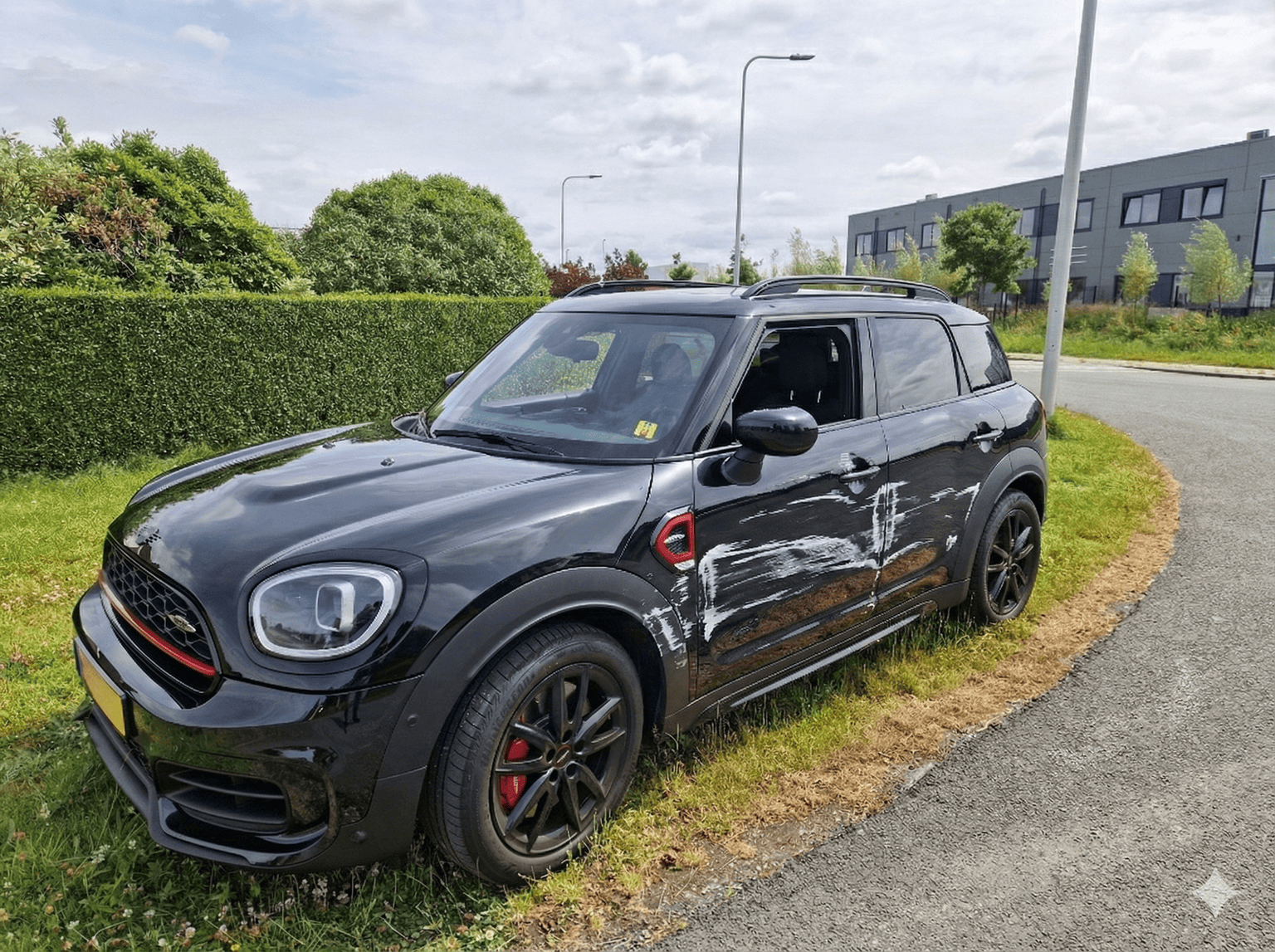 Het resultaat? Een foto die prima door zou kunnen gaan als onderbouwing van een schadeclaim. De krassen zien er realistisch uit, de schaduwen kloppen, en zelfs de reflecties in de lak zijn meegenomen.